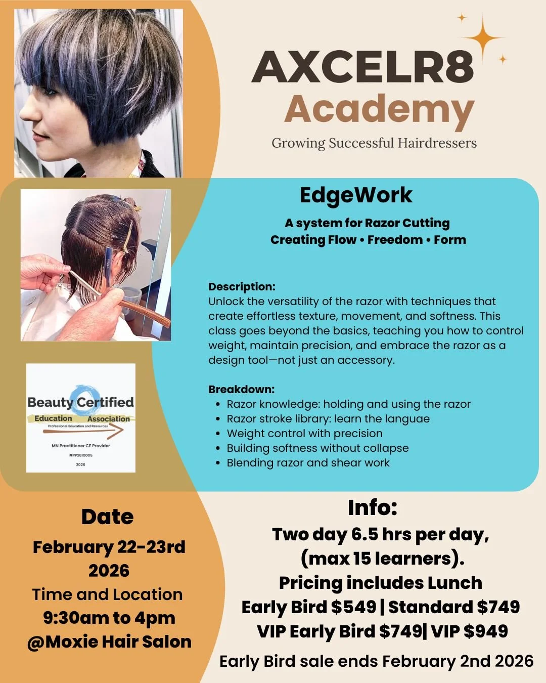Hands On Categories: All Barbering Business Color Cutting Hands On Instructors Makeup Skin Care Texture All / Quick View Demo and Work Shop (4 Hr CE) Feb 1st with Dan Dotseth: Fundamentals of Clipper Cutting and Short Haircuts (Copy) $175.00 Quick View Blue Print: (Standard). January 25th -26th Sale Price: $549.00 Original Price: $749.00 Sale Quick View Blue Print: January 25th -26th (Student Price) Sale Price: $349.00 Original Price: $549.00 Sale Quick View EdgeWork: (Standard) February 22-23rd Sale Price: $549.00 Original Price: $749.00 Sale Quick View EdgeWork: February 22-23rd (Student Price) Sale Price: $349.00 Original Price: $549.00 Sale Quick View AXIS System: (Standard) March 29-30th Sale Price: $549.00 Original Price: $749.00 Sale Quick View AXIS System: March 29-30th (Student Pricing) Sale Price: $349.00 Original Price: $549.00 Sale Quick View Helix System: (Standard) April 26-27th Sale Price: $549.00 Original Price: $749.00 Sale Quick View Helix System: April 26-27th (Student Pricing) Sale Price: $349.00 Original Price: $549.00 Sale